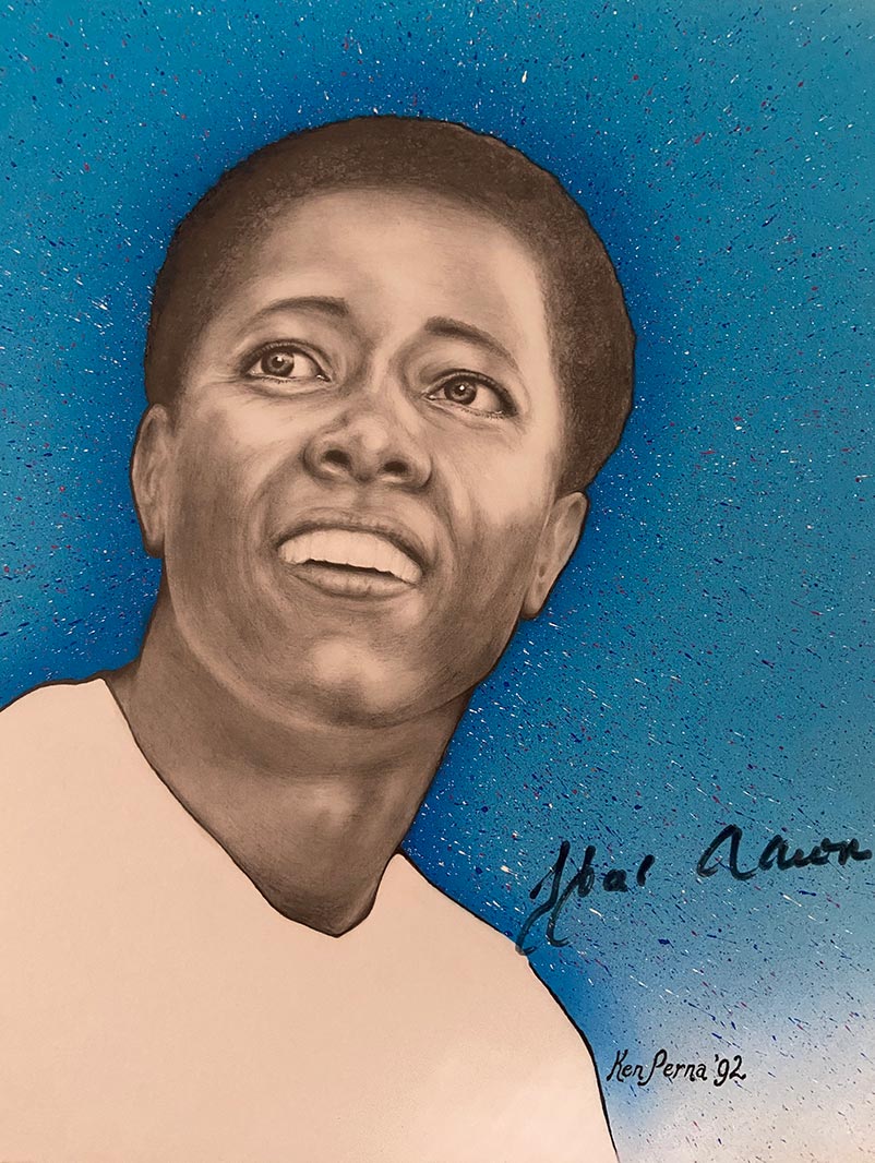 Original one-of-a-kind pencil and airbrush illustration of Hank Aaron, personally signed by him and authenticated by JSA Authentic...